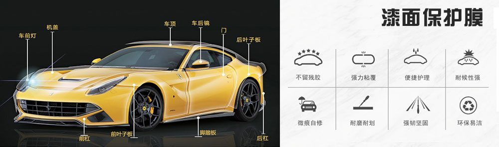 包括全套的漆面保护膜、车窗着色膜、商业建筑与住宅窗膜、安全膜、防涂鸦膜以及装饰膜。